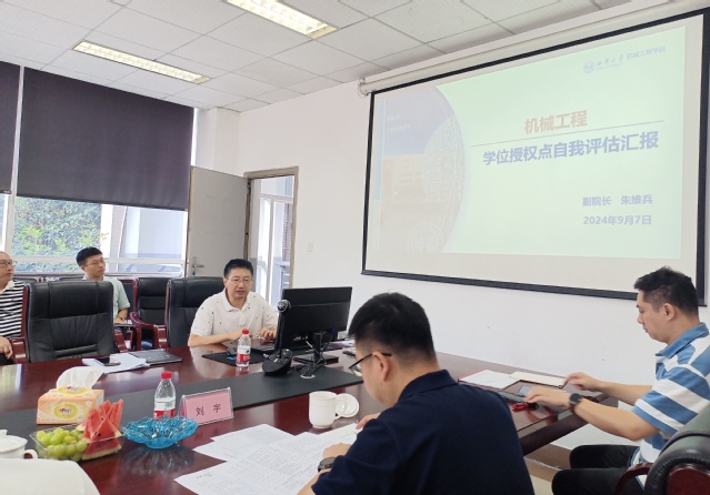 费凌代表学校向专家组表示热烈欢迎,简要介绍了学校和学院发展概况,诚恳希望专家组对机械工程一级学科硕士学位授权点建设提出宝贵意见建议。机械工程学院副院长朱维兵从学位授权点建设基本情况、培养条件、人才培养、服务贡献等四个方面向专家组进行汇报。
