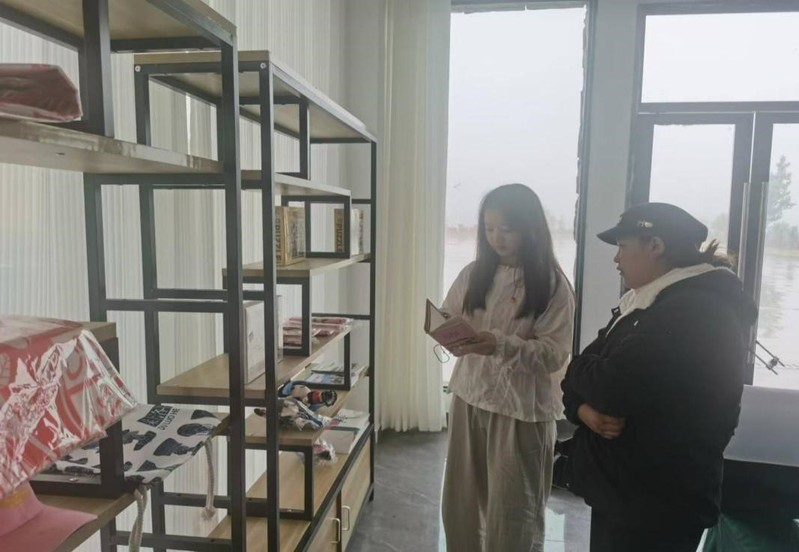 研究生代表首先来到了村委会,对村集体经济发展现状及相关法律问题展开了调研。妇联主任莫色尔火介绍道:“在党和政府的帮助下,火普村集体经济不断发展壮大,打造了蓝莓种植基地,形成了完整的农副产品、彝族特色文创产品销售产业链。”集体经济的发展离不开法治保障。立足于火普村集体经济发展实践,研究生们详细解答了村委会关于销售合同订立、合同效力等法律问题,解读了集体经济的公示公开等政策规定,为助力乡村振兴事业贡献法治力量。