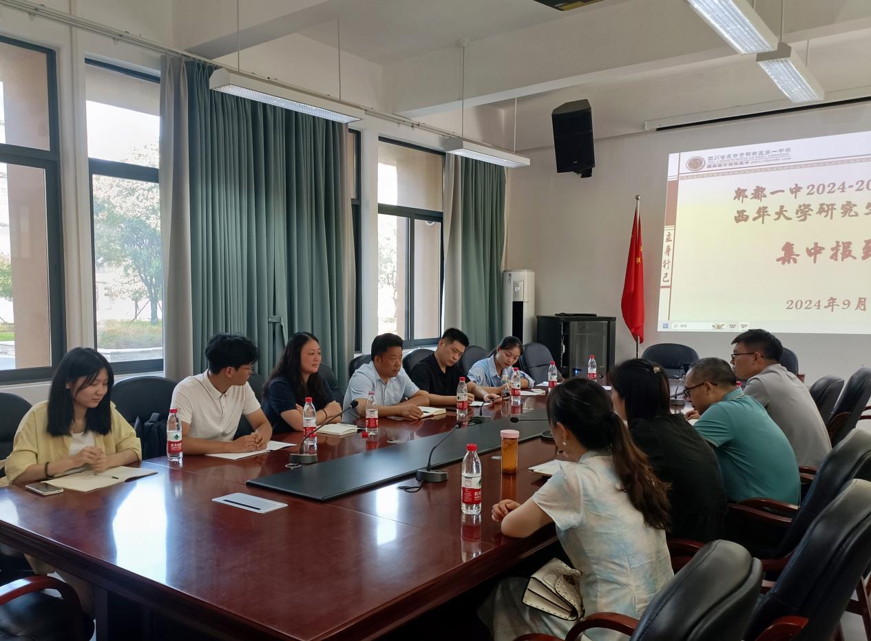 在国家大力推进大中小学思政课一体化建设的宏观背景下,又逢第40个教师节之际,bv伟德国际体育官方网站马克思主义学院2023级学科教学(思政)专业硕士研究生于2024年9月10日前往郫都一中教学实习。郫都一中隆重举行实习报到会。郫都一中校长蒋春鹏、副校长杨祖琴、教务处副主任王攀、bv伟德国际体育官方网站马克思主义学院副院长尹德志、思想政治教育系主任何为、副教授罗钰及学科教学(思政)方向研究生参加了本次会议。