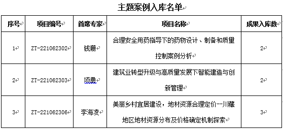 此次入库的案例涉及《合理安全用药指导下的药物设计、制备和质量控制案例分析》《建筑业转型升级与高质量发展下智能建造与创新管理》《美丽乡村宜居建设,地材资源合理定价——川藏地区地材资源分布及价格确定机制探索》等主题案例项目,入库案例的7个案例均具有时代性、引领性、学理性。下一步,学校将持续开展主题案例征集,鼓励专家学者扎根中国实践,讲好中国故事、传播中国声音,开发具有良好学术容量、高学理含量的高水平原创案例,为提高学校实践创新型人才培养质量做出更大贡献。