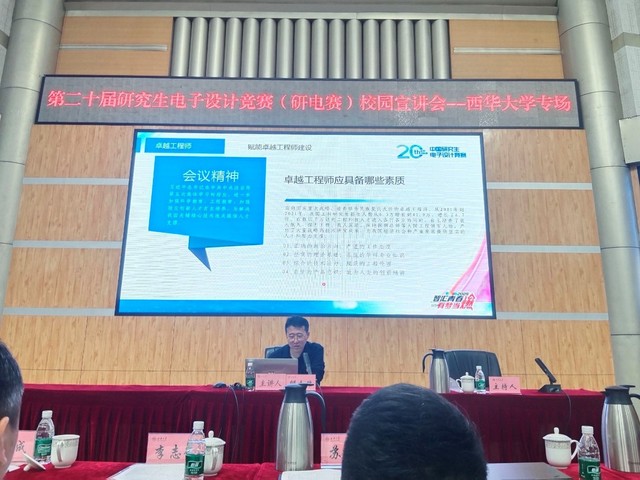 4月28日上午,第二十届中国研究生电子设计竞赛bv伟德国际体育官方网站专场校园宣讲会在四教报告厅举行。西南交通大学集成电路学院副院长邸志雄、清华大学深圳国际研究生院高级工程师李志德、命题企业代表来校宣讲,研究生院副院长苏文明,电气与电子信息学院副院长阎铁生及师生代表参加会议。
